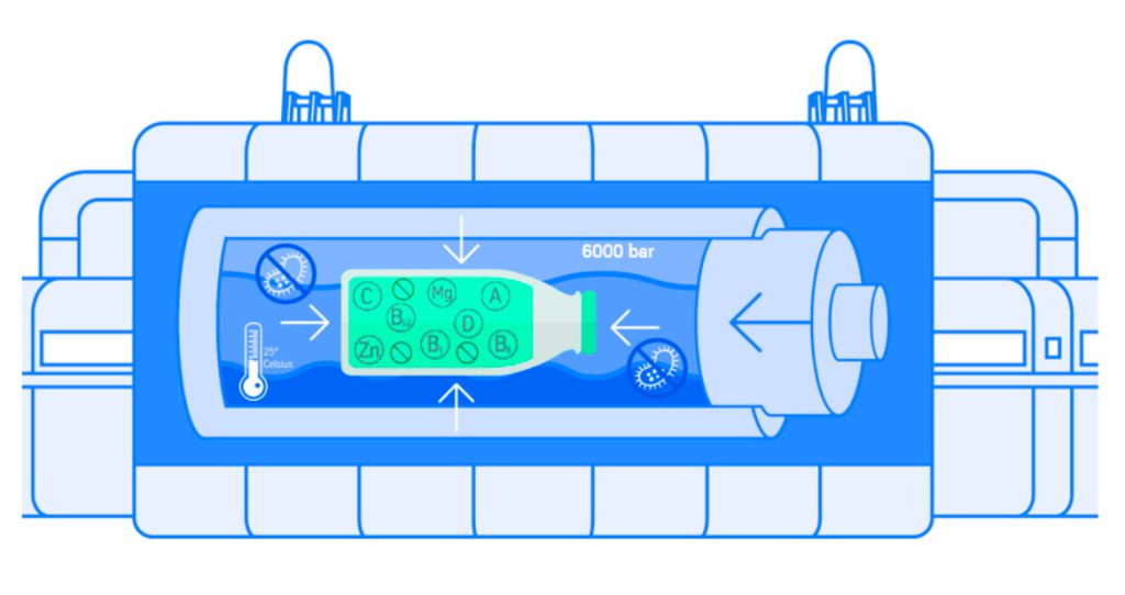 High Pressure Processing is the method that makes germs and bacteria harmless and preserve the taste and the vitamins. While unwanted microorganisms can survive even under conditions of extreme heat or cold, germs and bacteria are susceptible to changing pressure conditions and can be eliminated by applying pressure.