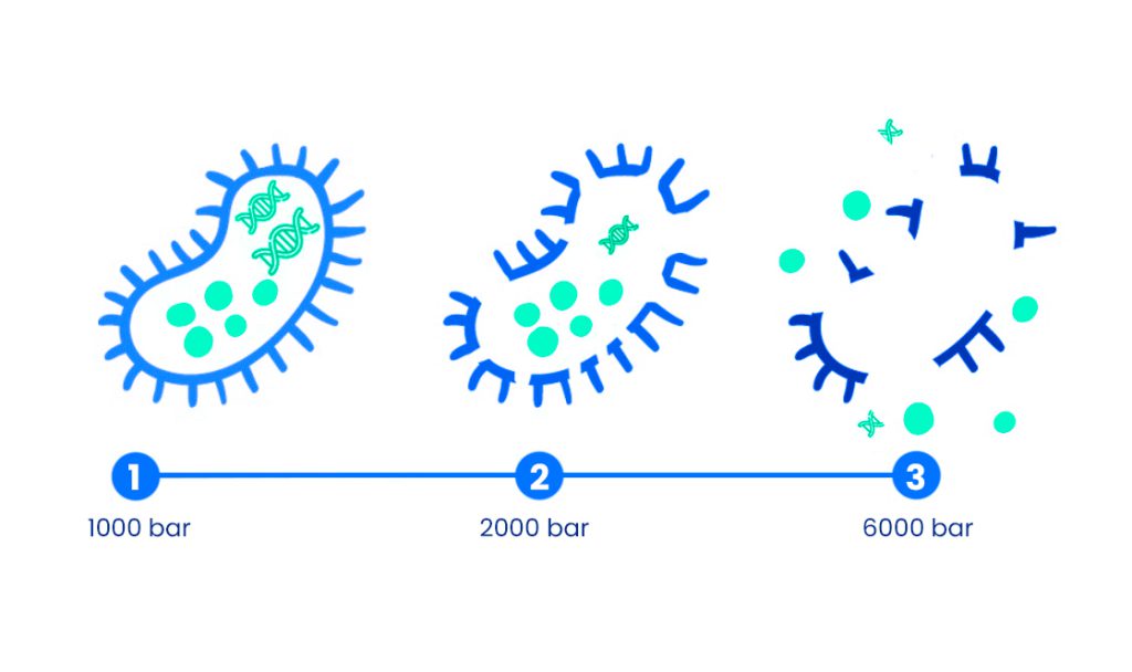 HPP compromises cellular functions such as DNA replication, transcription, translation already at lower pressures (≤100 MPa) which impairs bacterial growth.